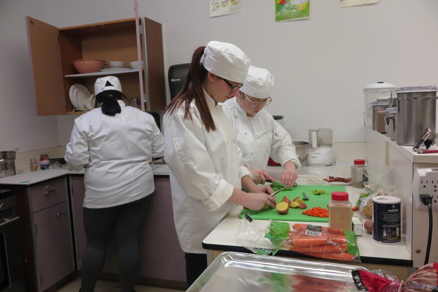 At 4 o’clock on a snowy Tuesday afternoon, Teresa Twichel, Lexington Campbell, Jacy Powell and Kazmira Martinez are cooking away in Mrs. Haley Barker’s room. The team of four are preparing to compete at the Montana ProStart Invitational the weekend of March 3 and 4 in Missoula, Montana at Missoula College. The teams compete in two categories: Culinary and Management.